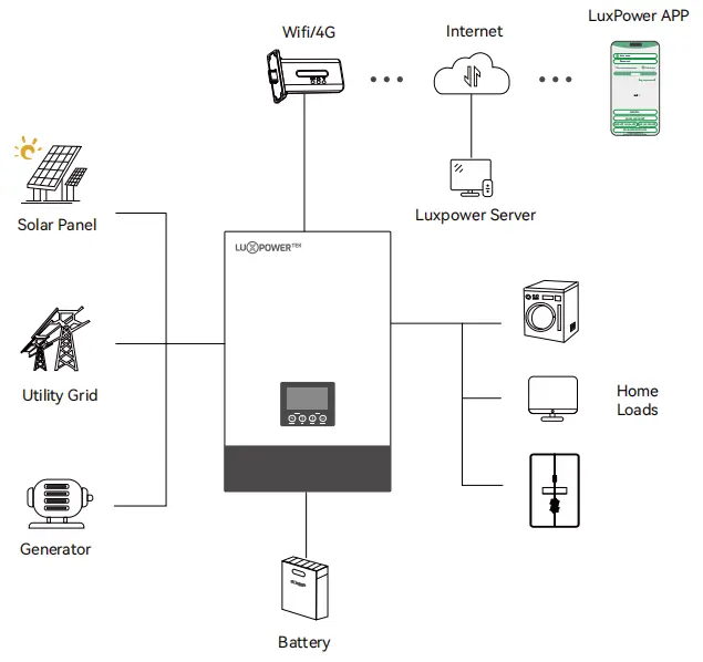 Luxpower SNA6000 Off-Grid falownik obsługuje systemy konwertera DC-DC, służąc jako niezawodna moc kopii zapasowej lub wymiana generatora wysokoprężnego. W przypadku funkcjonalności równoległych pojemność systemu skaluje się od 6 kW do 96 kW. Fyder obsługuje tryby pracy konwertera DC-DC: