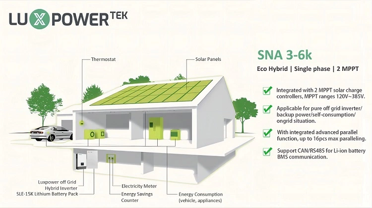 Sunlink's Luxpower SNA 6000 zapewnia nieprzerwaną moc dla twojego domu, niezależnie od tego, czy jest podłączony do siatki, czy nie.